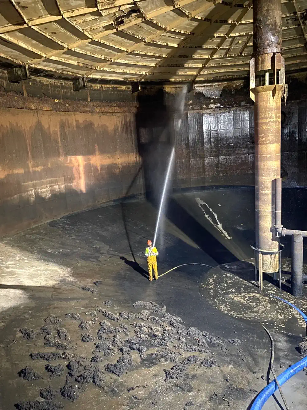 Inside a digester tank with heavy solids
